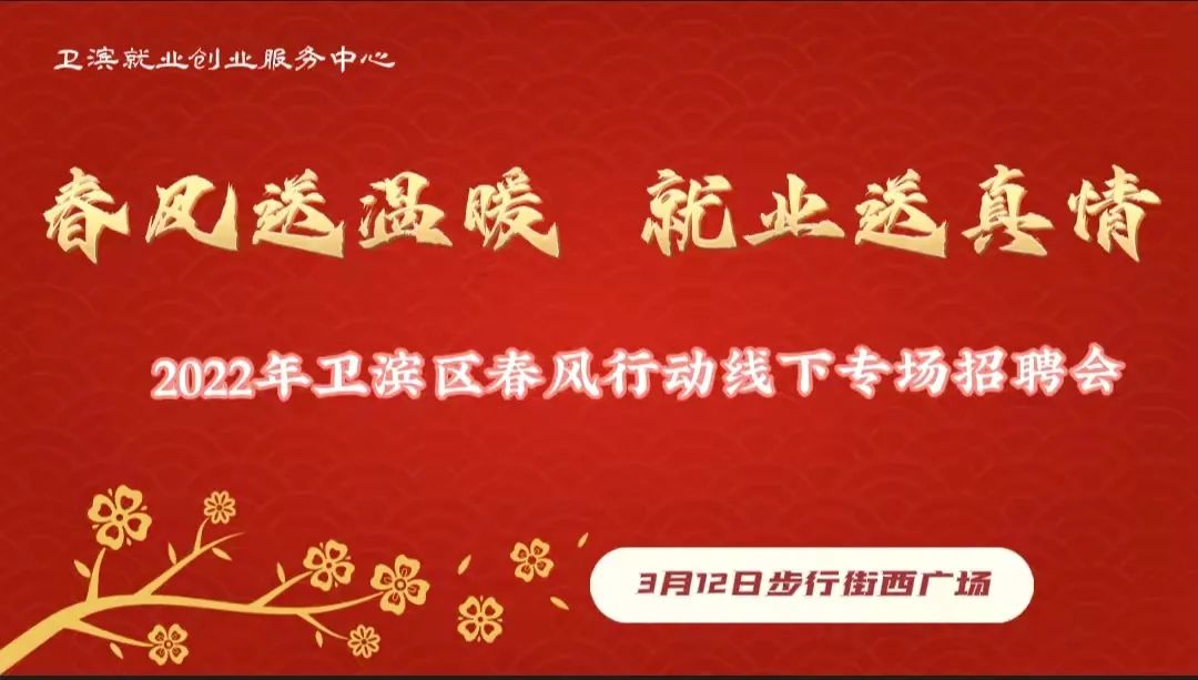 为全面贯彻党的十九大和十九届历次全会精神,继续做好“六稳”“六保”工作特别是保就业保民生保市场主体,集中为务工人员提供就业帮扶,助力常态化疫情防控,推动就业形势总体稳定,卫滨区人力资源和社会保障局、卫滨区科技工业和信息化局、卫滨区民政局、卫滨区交通运输局、卫滨区农业农村局、卫滨区总工会、共青团卫滨区委、卫滨区妇联、卫滨区退役军人事务局决定开展春风行动。