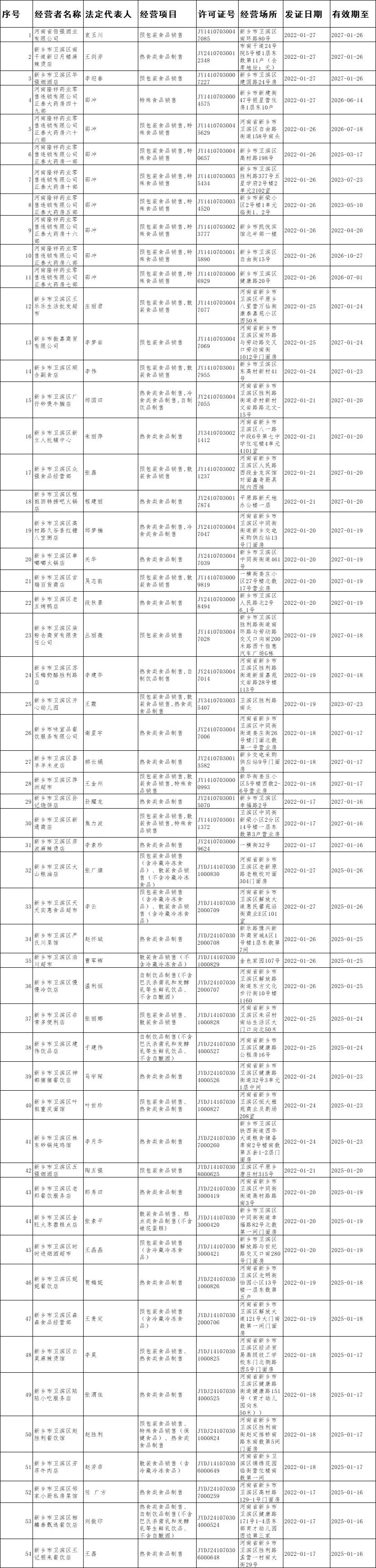 根据《食品药品安全监管信息公开管理办法》、《食品经营许可管理办法》、《食品经营许可审查通则(试行)》、《河南省食品经营许可管理实施办法(试行)》和《河南省食品小经营店登记管理办法》等有关规定,经过资料审核,本周有以下经营单位符合规定,获发《食品经营许可证》或《河南省食品小经营店登记证(试行)》,现予以公示,请社会各界监督。