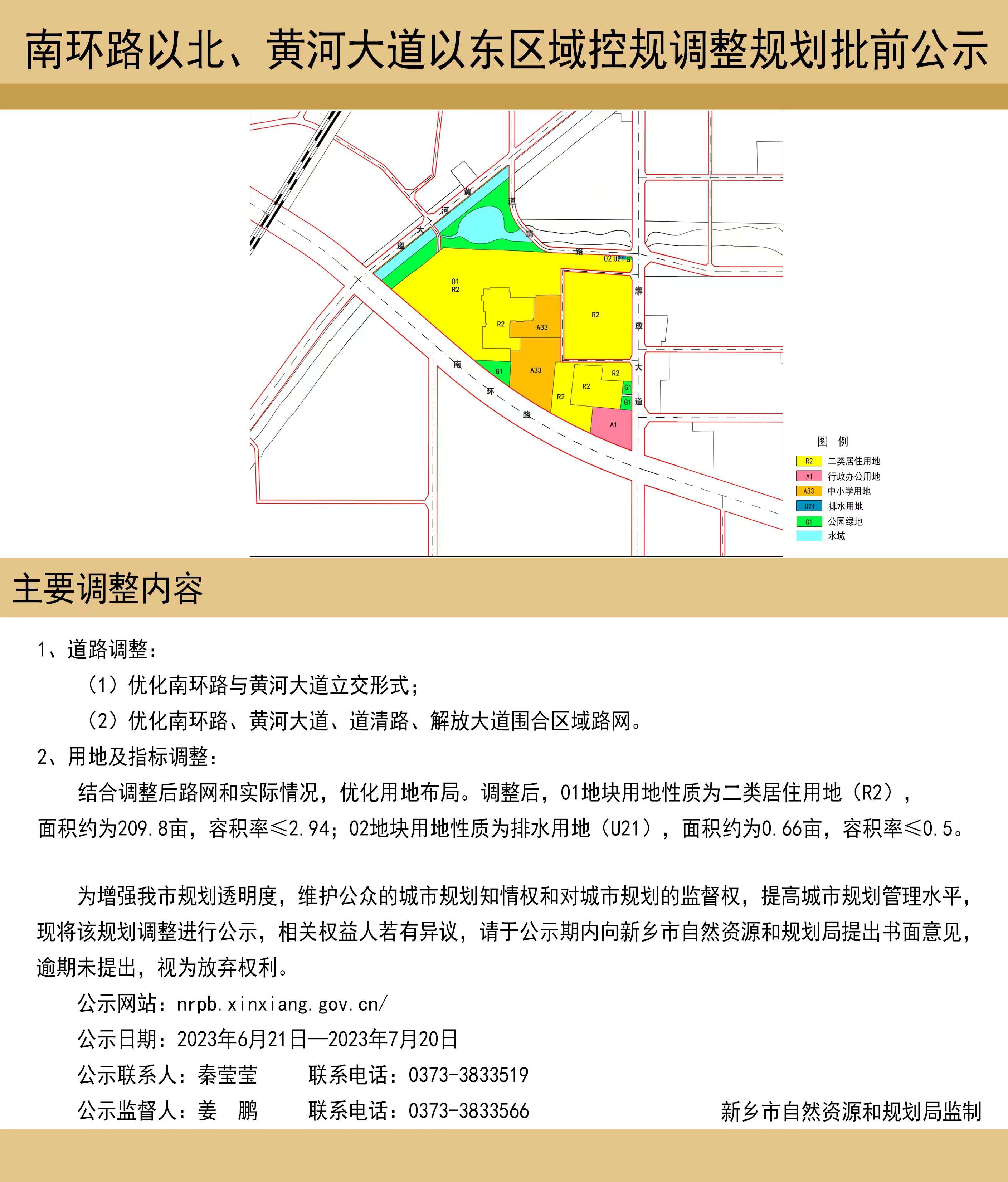 南环路以北、黄河大道以南区域控规调整规划批前公示