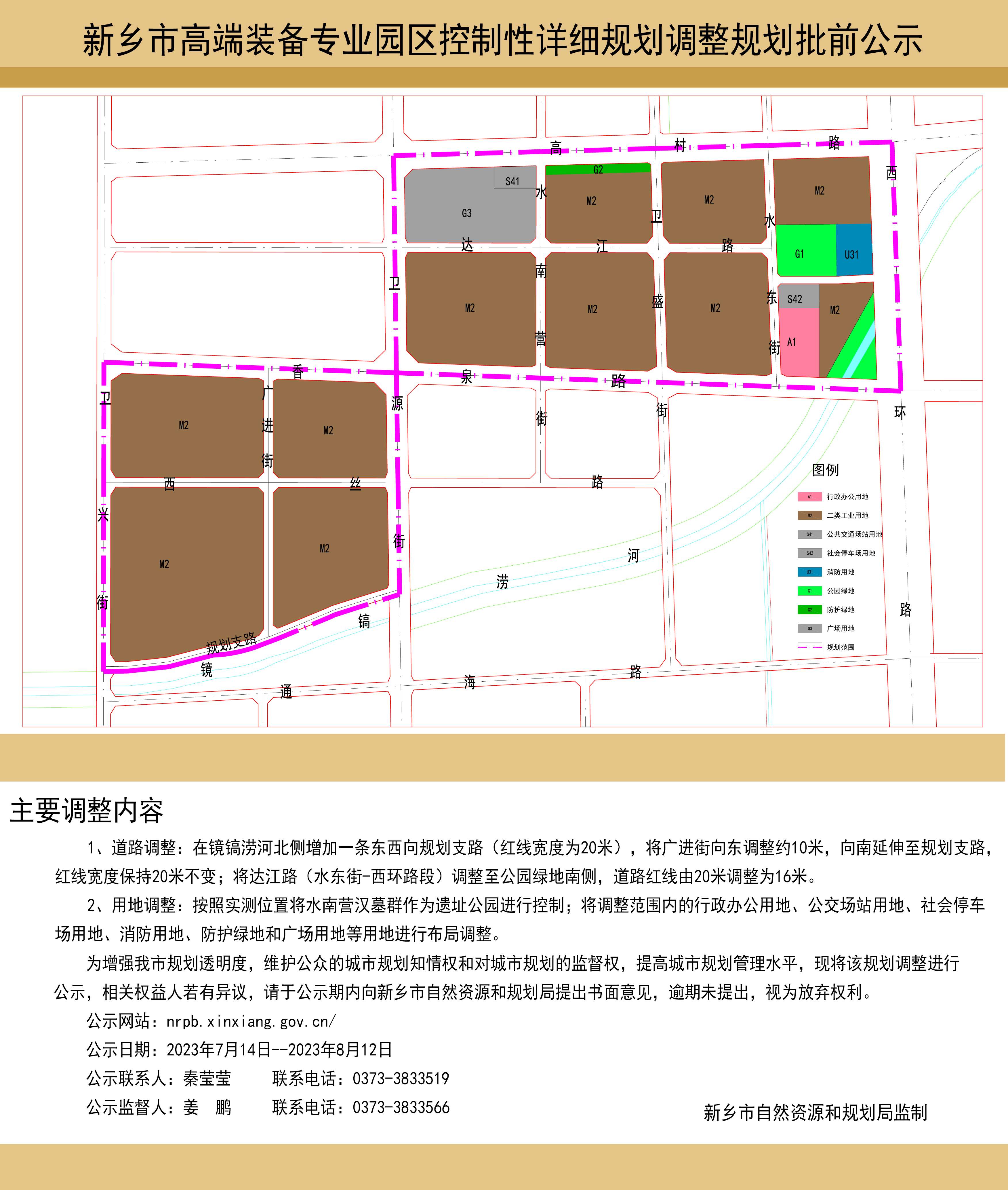 新乡市高端装备专业园区控制性详细规划调整批前公示