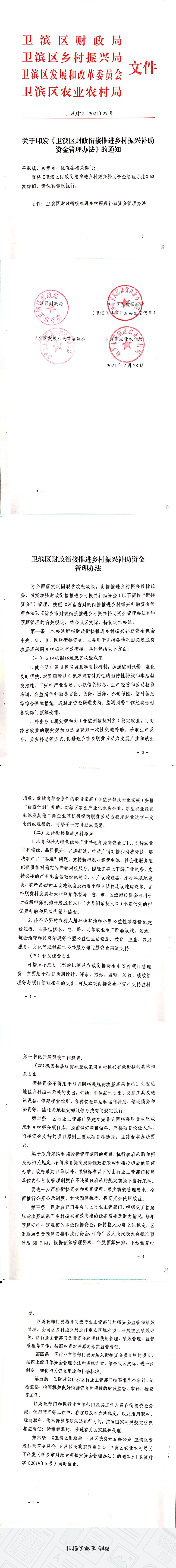 关于印发《卫滨区财政衔接推进乡村振兴补助资金管理办法》的通知