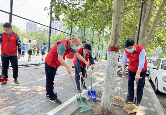 在健康路、在金穗大道、在平原路、在胜利路沿线,区委书记李海潮、区长魏海晓、区人大常委会主任顾崇豪、区政协主席杨义红等四大班子领导带头穿上红马甲,来到分包点位,与志愿者一道对沿街门店、社区庭院、背街小巷等开展卫生清扫、门窗清洗、橱窗广告清理、清理乱堆乱放,门店招牌破旧整治、乱贴乱画小广告清除;