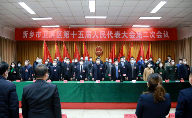 最后,卫滨区十五届人大二次会议在雄壮的国歌声中胜利闭幕。