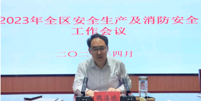 4月14日,卫滨区召开2023年度安全生产及消防安全工作会议。学习贯彻中央、省市相关会议精神,传达市委、市政府主要领导批示要求,总结2022年工作,安排部署2023年工作。区长魏海晓出席并作重要讲话,区委常委、常务副区长郭呈杰主持会议。