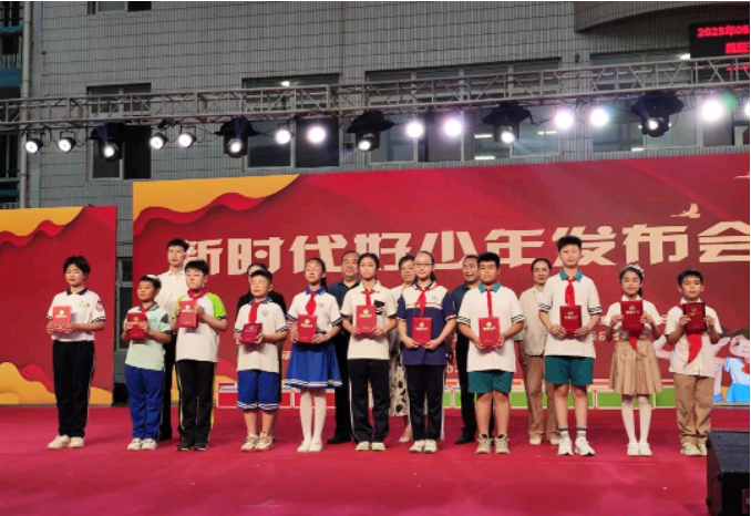 活动同时表彰了全国优秀少先队员王炫霖同学及24名校级新时代好少年。人民路小学党支部书记、校长、学校少工委主任闪郁琦同志发表讲话,她希望全体人小学子高举队旗跟党走,争做新时代好少年,在为祖国和人民利益的不懈奋斗中书写人生华章。