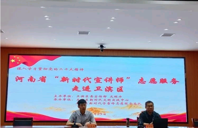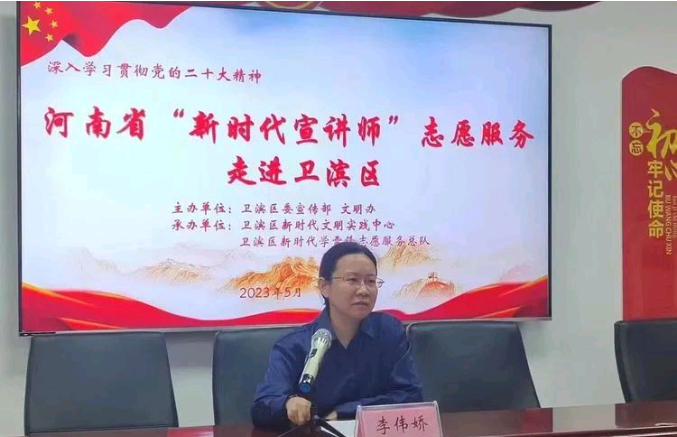 为深入学习宣传贯彻党的二十大精神,深化拓展新时代文明实践中心建设,推动文明实践志愿服务更好地惠及居民群众,按照省、市文明委《关于实施“新时代宣讲师”计划的工作方案》的要求,5月25日至5月26日,卫滨区委宣传部、区文明办、区新时代文明实践中心、区新时代文明实践学雷锋志愿服务总队开展河南省“新时代宣讲师”志愿服务走进卫滨区新时代文明实践中心、平原商场、河南经济贸易技师学院、铁西街道办事处新时代文明实践所、怡园社区新时代文明实践站共计5场宣讲活动。活动特邀河南省疾病预防控制中心性病艾滋病所副主任马彦民同志为广大干部群众分别进行了传染病疾病预防知识宣讲。卫滨区委常委、宣传部长、副区长李伟娇出席并讲话。各新时代文明实践所(站)、各级各类文明单位等1200余人参加活动。