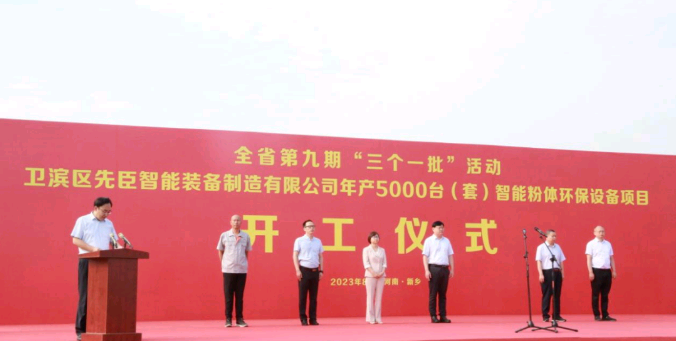 风正好扬帆,奋斗正当时。按照省委、省政府统一安排部署,8月15日上午,卫滨区与全省同步举行第九期“三个一批”活动,“开工一批”活动在河南先臣智能装备制造有限公司年产5000台(套)智能粉体环保设备项目现场举行。李海潮、魏海晓等四大班子领导出席仪式,各镇办、区直相关单位、企业负责同志参加活动。