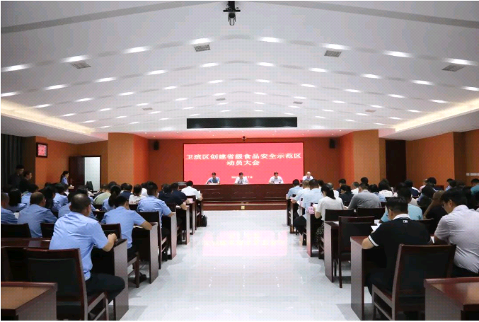为推进全区食品安全监管工作提标提质,按照省、市关于创建河南省食品安全示范区相关要求,9月7日下午,卫滨区召开创建食品安全示范区动员大会,对创建工作进行总动员、深安排、细部署。区委书记李海潮出席会议并作重要讲话。区长魏海晓主持会议。区领导段红伟、李付晋出席会议。区食品安全委员会各成员单位党政主要负责同志及分管领导、区市场监管局中层以上干部参加会议。
