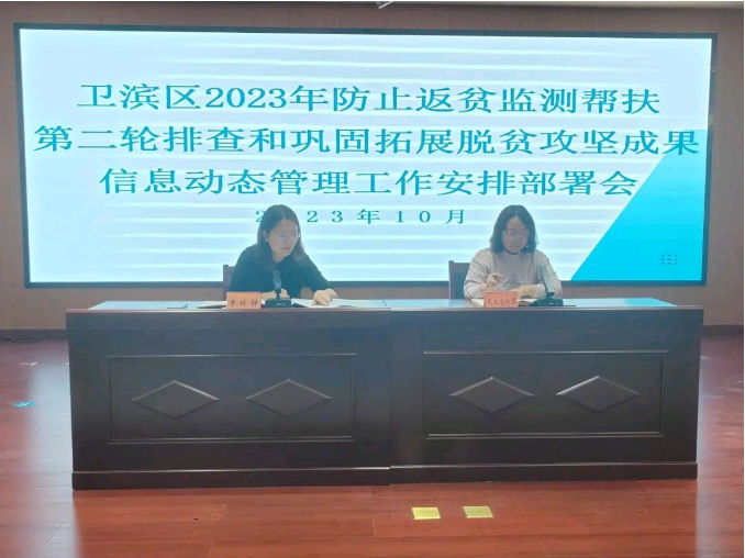 22日,培训班结束后,卫滨区就地召开2023年防止返贫监测帮扶第二轮排查和巩固拓展脱贫攻坚成果信息动态管理工作部署会议,区农业农村局局长张艳丽对当前动态管理工作进行再细化部署,区政府副区长朱林静主持并作重要讲话。