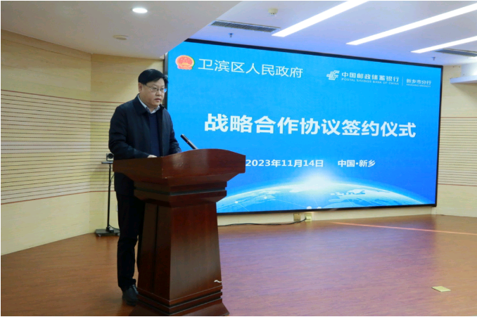 李海潮代表卫滨区委、政府,对邮储银行新乡分行长期以来给予卫滨经济发展的支持表示了充分地肯定和感谢,他希望,双方以此次签署战略合作协议为新的起点,进一步创新合作方式、拓展合作空间、提升合作水平,围绕重大项目建设、产业发展、城市更新、乡村振兴、普惠金融等加大信贷投放力度,支持实体经济发展,为卫滨提供更高质量的金融服务。