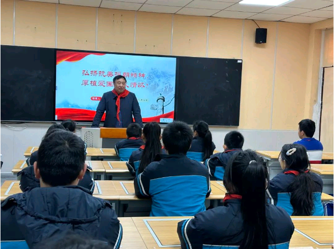 张胜利以《弘扬抗美援朝精神,厚植爱国主义情怀》为题,围绕“抗美援朝的背景”、“伟大的抗美援朝精神”、“新时代要怎样弘扬抗美援朝精神”三个方面,讲述了抗美援朝这场“开国之战”“正义之战”“立威之战”“止战之战”的重大意义,通过讲述抗美援朝战争中涌现出来的英雄人物故事,阐释了伟大的抗美援朝精神内涵。随后,从中国经济、军事、航天、体育等领域的发展,再到综合国力发展带来的社会新面貌、新变化,使学生们增强了民族自豪感和爱国情怀。