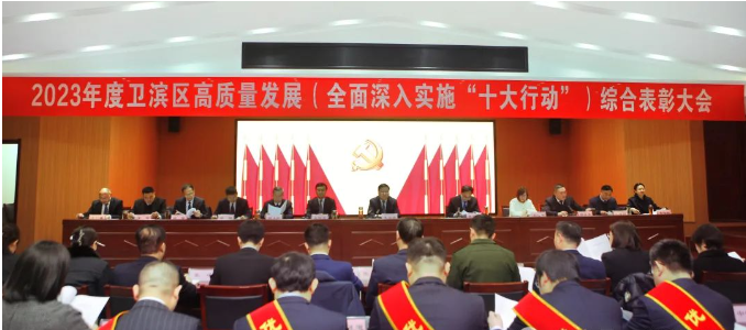 2月23日,卫滨区召开2023年度高质量发展(全面深入实施“十大行动”)综合表彰大会,表彰我区优秀企业、优秀企业家以及在2023年全区经济社会高质量发展中作出突出贡献的先进集体和先进个人,动员全区上下以更坚定的信心、更昂扬的斗志,全面对标先进、学习先进、争当先进、赶超先进,在中国式现代化建设卫滨实践新征程上奋勇争先、再创佳绩。区委书记李海潮出席会议并讲话,区长魏海晓主持会议,王西忠、赵俊芳、杨义红、郭呈杰、钱伟、张胜利、周伟、李伟娇、于智、李付晋等区领导出席会议。