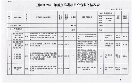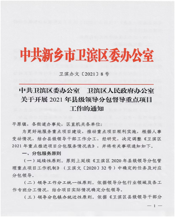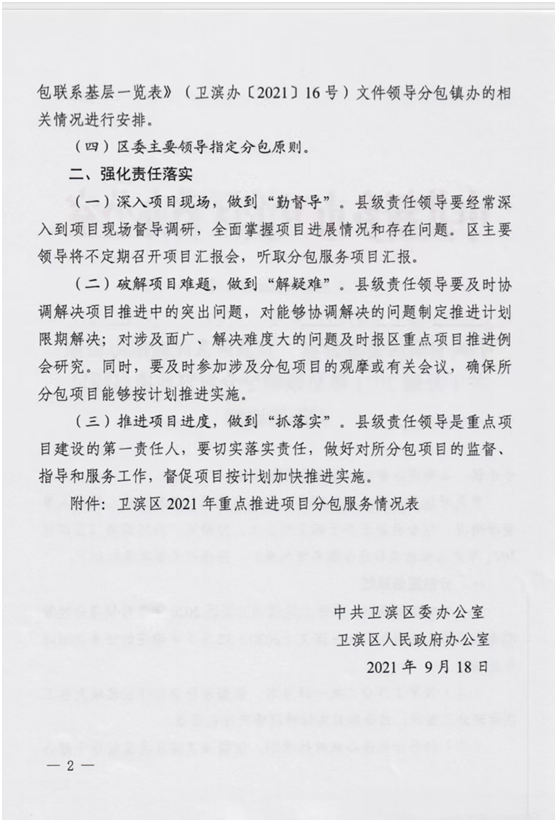 中共卫滨区委办公室 卫滨区人民政府办公室 关于开展2021年县级领导分包督导重点项目工作的通知