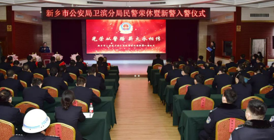 光荣从警路,薪火永相传!在第三个人民警察节到来之际,为进一步增强民警们的职业认同感、荣誉感、责任感和归属感,1月9日下午,新乡市公安局卫滨分局在长城宾馆多功能厅召开以“光荣从警路 薪火永相传”为主题的民警荣休暨新警入警仪式。分局党委班子成员,机关、基层一线民辅警及退休民警、新入警民警代表共120余人参加仪式。