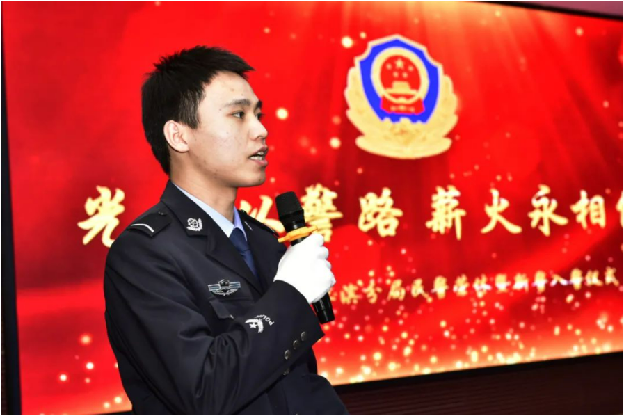 新警代表孟祥宇表示将牢记前辈教诲,积极继承和发扬老前辈的优良传统和作风,向老领导、老前辈看齐,自觉在各项工作任务中经风雨、见世面,在繁重的实战中壮筋骨、强本领,奋力为卫滨公安事业增光添彩