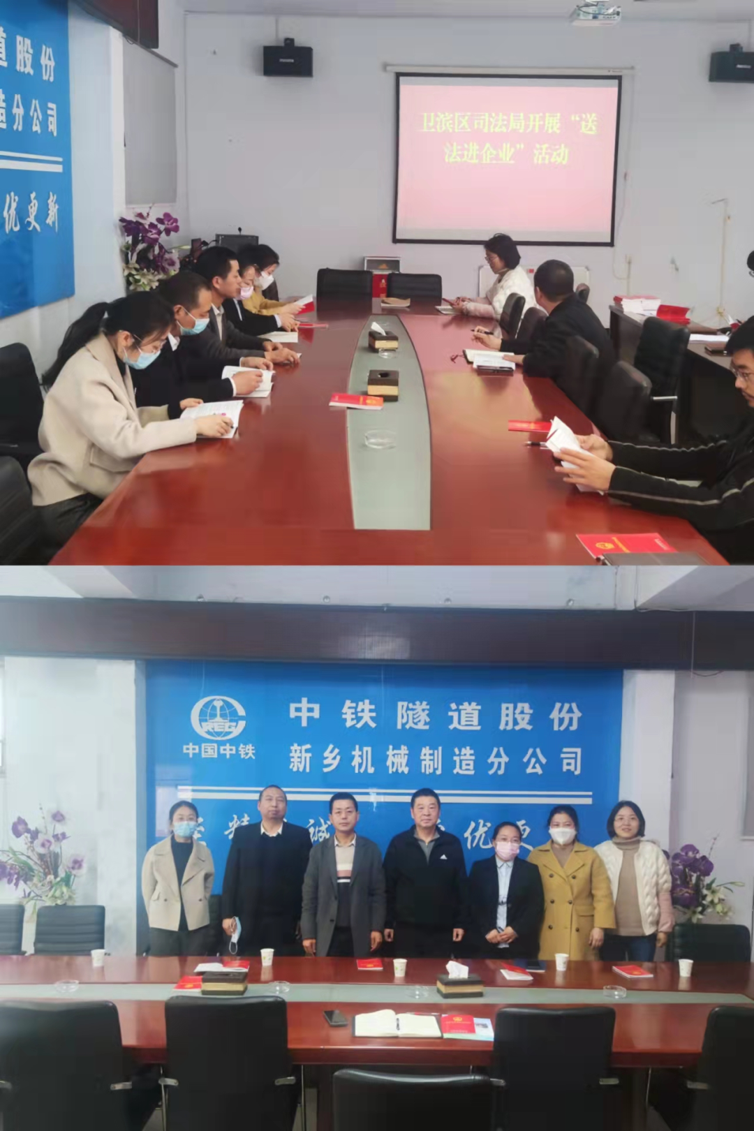 为持续优化营商环境,为辖区重大项目和企业发展提供优质法治保障,3月30日下午,卫滨区司法局副局长刘敏一带领局普法依法治理股、律师股等股室负责人,河南龙健律师事务所律师秦晓帅、刘丽娟一行到辖区中铁隧道股份新乡机械制造分公司开展“送法进企业”活动。