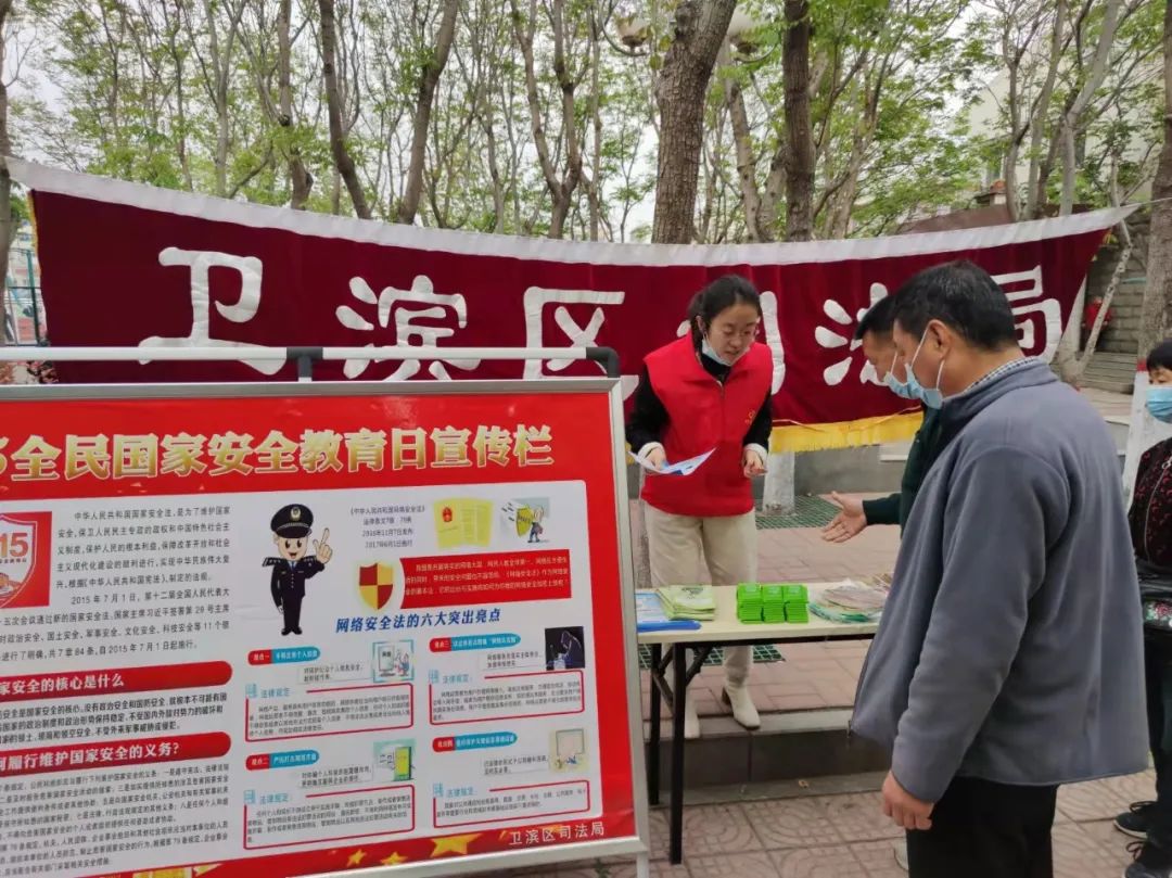 为树牢总体国家安全观,感悟新时代国家安全成就,为迎接党的二十大胜利召开营造良好氛围。4月15日上午,卫滨区司法局开展国家安全日普法教育活动,提升全民国家安全意识。