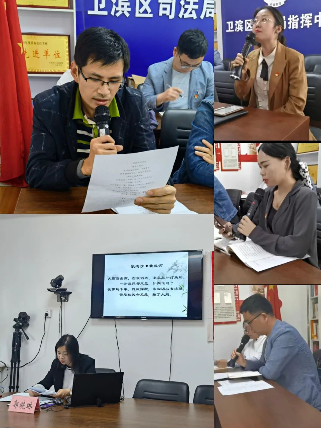 4月21日下午,卫滨区司法局召开4月份主题党日活动,支部副书记郭晓琳同志以《重温毛泽东诗词经典 学党史 守初心 担使命》为主题,为全体党员及入党积极分子带来一场特色的党史学习教育洗礼。