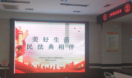 在活动现场,借助大厅电子显示屏的便利优势,精心选取群众较为关注的婚姻财产、防范养老诈骗、饲养动物致人损害等与群众息息相关的《民法典》漫画视频进行播放,增强了宣传《民法典》的趣味性,让群众真正认识到《民法典》是保护自身权益的“社会生活百科全书”式法典。