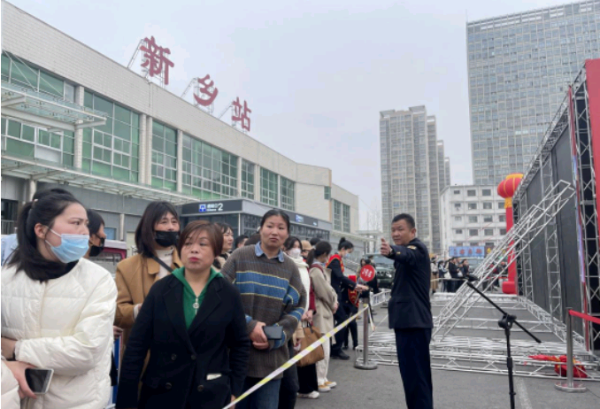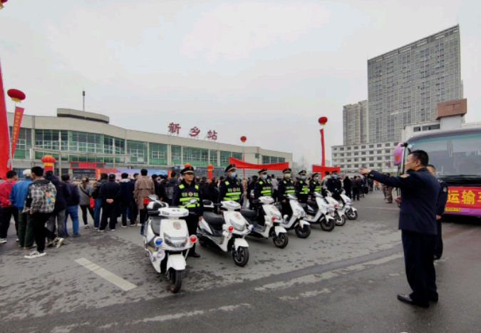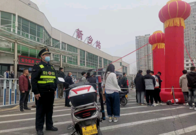 新乡市2023年春季首批起运新兵欢迎仪式在新乡火车站隆重举行,卫滨区城管局两站办维持火车站广场周边秩序。