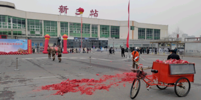 2023年3月20日上午,新乡火车站广场鞭炮齐鸣,掌声响起。新乡市2023年春季首批起运新兵欢送仪式在新乡火车站隆重举行。卫滨区城管局副书记、两站办主任席长兵带领两站办全体工作人员到现场维持秩序,安排人员有序引导群众不在进、出口通道逗留,劝导群众文明送兵,有序观看,不随手遗弃垃圾。在送兵仪式现场周边安排人员无缝隙不间断巡查,对违规停放车辆进行劝离,发现二次污染垃圾随手进行捡拾。此次行动卫滨区城管局两站办共出动人员20人次,巡查车辆8台,有效确保了送兵仪式的顺利完成。