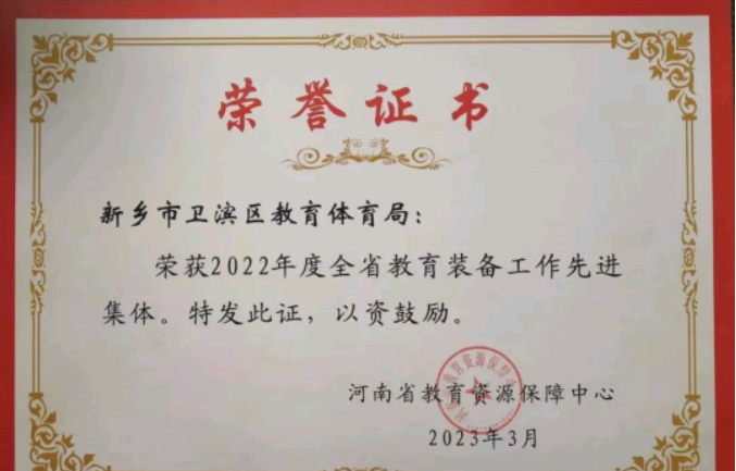 喜报!卫滨区教育体育局荣获全省教育装备工作先进集体