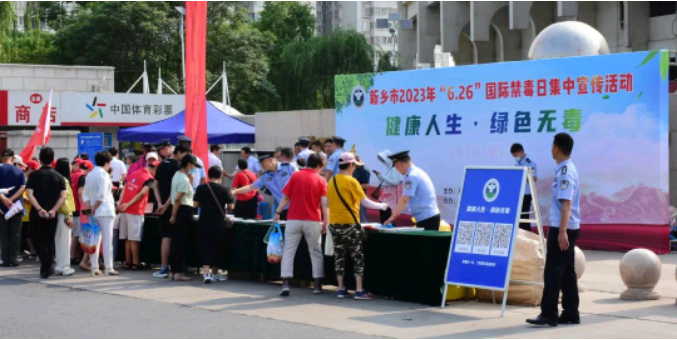 2023年 6月26日是第36个国际禁毒日。为积极倡导“健康人生、绿色无毒”理念,全力提升人民群众识毒防毒拒毒意识,新乡市2023年“6·26”国际禁毒日集中宣传活动在市体育中心西门举行。