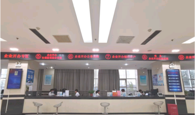 聚焦企业全生命周期,整合优化行政审批流程,提高协同审批效率,融合市场监管、刻章、税务、医保、社保、银行等多个窗口,改变以往先在政务服务大厅现场提交材料、领取营业执照,再前往银行办理开户手续的繁琐模式,让企业可以直接在大厅办理营业执照、刻制印章、申领发票、银行开户、员工参保登记等手续,“一窗受理、内部流转、同步审核、统一出件”的集约化服务模式,打破业务办理层级,实现同一市场主体只需到一个窗口申请,提交一套材料,即可一次性办齐营业执照和相关许可证,最大程度减少各环节衔接和等待时间,降低市场主体非经营性成本,提升全流程办事体验,进一步提升了企业获得感和幸福感。今年以来,企业开办专区办理企业开户703家,免费刻制印章1406枚。