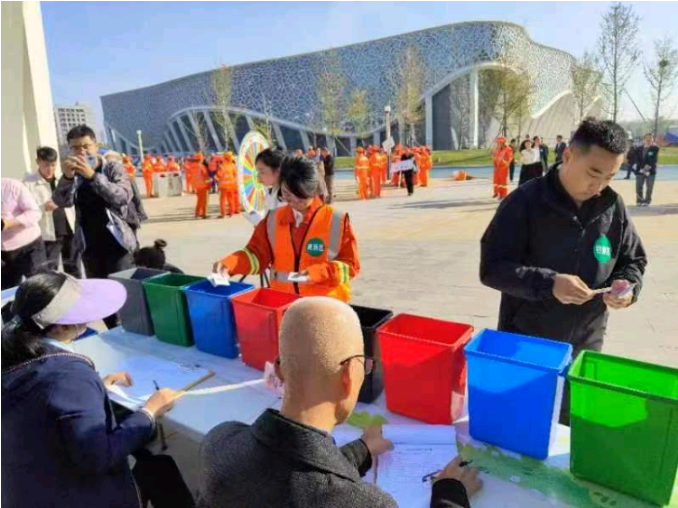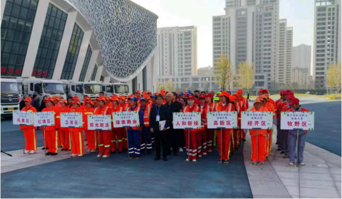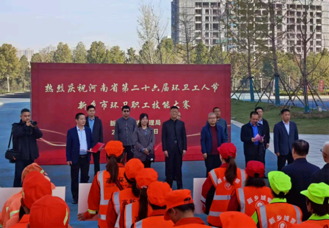为庆祝河南省第二十六届环卫工人节,进一步激发环卫职工学技术、练技能的热情,促进环卫人员的学习和经验交流,不断提高环卫职工的技能水平,新乡市于2023年10月25日在平原体育中心组织垃圾分类和清扫技能等竞赛活动。新乡市城管局局长王志文,副局长刘加喜、市环境卫生事务中心主任孙长虹等领导莅临活动现场。参加竞赛的有红旗区、卫滨区、牧野区、凤泉区、经开区、高新区和市区的三家保洁公司共9个参赛队。