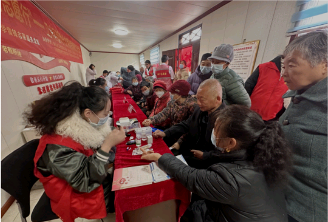 义诊活动现场,医护志愿者们认真为每一位村民免费查体、量血压、测血糖,进行常见病、慢性病的咨询和初步筛查,并结合村民的身体状况给予合理的健康调理建议,讲解冬季流行性疾病预防、保健知识,详细耐心解答村民的各种疑问。同时,还针对特困群众的救助政策、复员退伍军人优惠政策、退伍军人优抚救助政策进行了宣传。