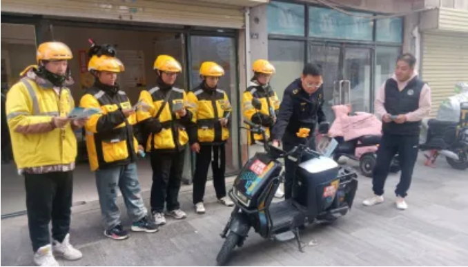 为进一步营造电动自行车安全隐患全链条整治良好社会氛围,切实加强外卖送餐企业电动自行车的安全监管,压实外卖送餐平台安全主体责任,提升外卖骑手安全用车意识,11月21日下午,卫滨区市场监管局、卫滨区外卖送餐行业党委组织工作人员到辖区外卖送餐企业开展“外卖送餐企业送安全”宣传活动。美团盐城即美达新乡三站配送站的安全管理员及外卖骑手代表参加了宣传活动。