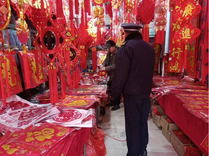 结合辖区实际,在不占用机动车道、非机动车道、人行便道、盲道、消防通道、公共场所等场所的前提下,区城管局设置临时字画销售和春节促销经营摊点65处,安排专人在活动点位周边开展巡查,及时对市容和交通乱象进行清理。同时坚持柔性执法和审慎监管相结合,做好节日临时售卖摊点的监督管理工作,督促经营商户文明经营。