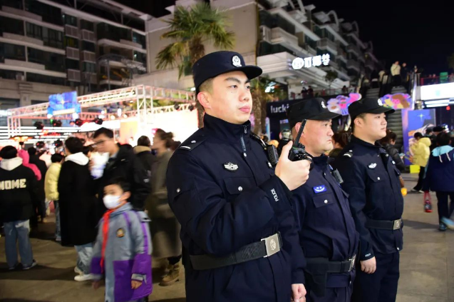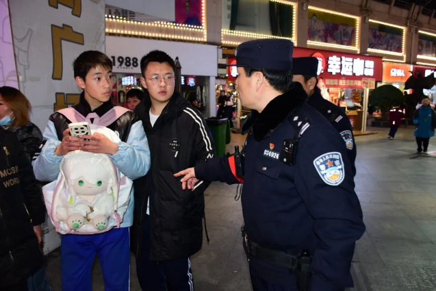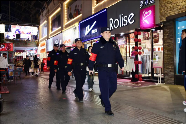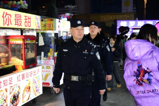 临近晚上10点,寒意渐浓,卫滨辖区闹市区仍是灯火通明,卫滨警方跨年夜安保工作仍在继续,他们坚守在各自执勤岗位,采取定点值守与徒步巡逻相结合的方式,确保辖区群众平安游玩。