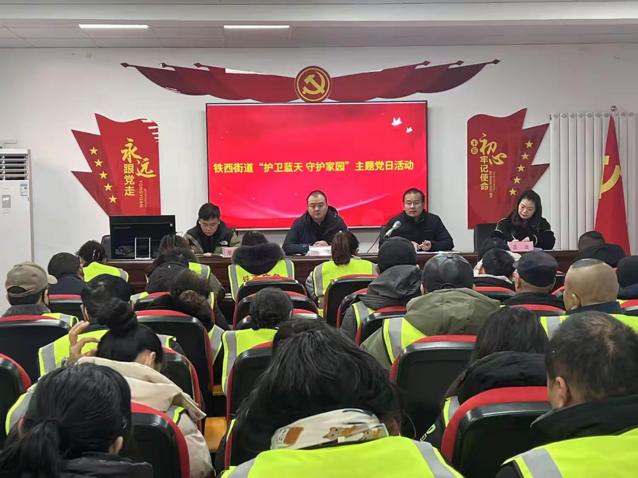 为深入打好蓝天保卫战,筑牢元宵佳节期间安全防线,2月8日,铁西街道开展“护卫蓝天,守护家园”主题党日活动。铁西街道班子成员、辖区民警、社区干部、党员庭院长共60余人参加此次活动。