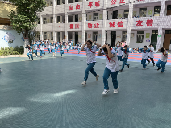 (图1为:姜庄街小学组织学生开展防震演练 李晓娟 摄)