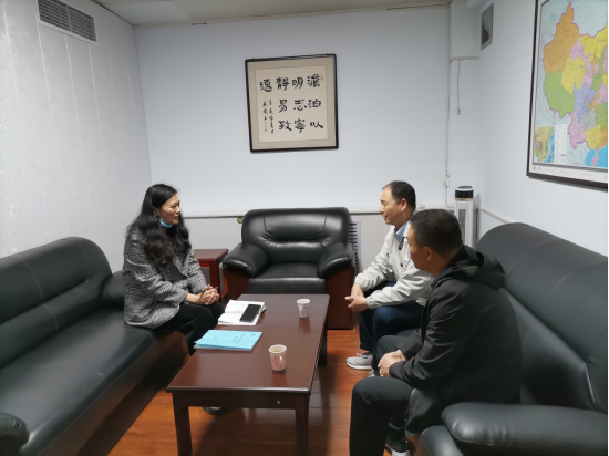 (图1为:卫滨区商务局副局长与企业座谈宣介政策 李平凯 摄)