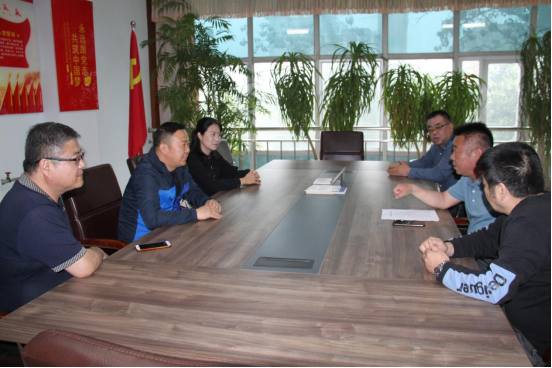 (图2为:河南勤工机器人有限公司负责人与卫滨区市场监管局、区营商办就此事进行交谈 李进清 摄)
