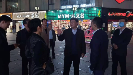 (图为:4月11日,省、市领导调研步行街“夜经济”发展情况 李平凯 摄)