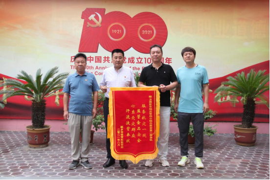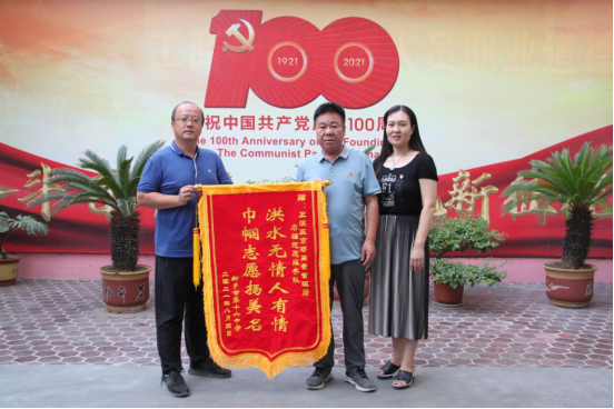 2021年8月10日上午,新乡市第十六中学、新乡市世青实验学校校长分别将写着“洪水无情人有情,巾帼志愿扬美名”和“服务抗灾一线,监管食品安全,心系受灾群众,汗流浃背奉献”的两面锦旗及感谢信送到了卫滨区市场监管局,高度赞誉该局巾帼志愿服务队的党员干部勇挑重担、防汛救灾、同舟共济、扶危助困的无私奉献和崇高的大爱精神。