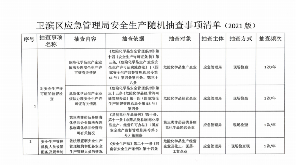 卫滨区应急管理局关于双随机一公开抽查结果的公示