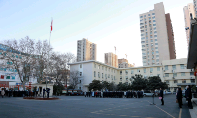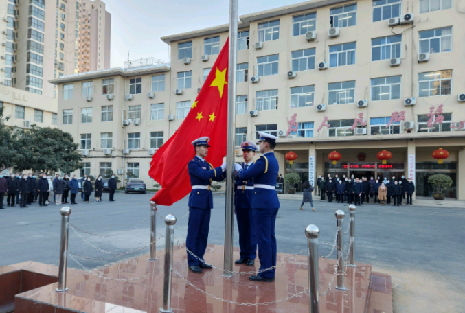 上午8点,伴随着雄壮的国歌声,五星红旗冉冉升起,全体干部职工精神抖擞、肃然而立,面向国旗,行注目礼,带着对新年的美好憧憬,共同见证国旗升起的神圣时刻。