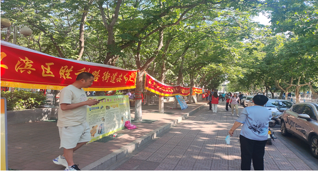 6月15日上午,卫滨区在解放大道市体育场东门两侧组织开展广场宣传活动,区非法集资领导小组成员单位参加宣传活动,同时组织辖区沿街大屏幕高频播放防范非法集资宣传内容,营造强大宣传声势。