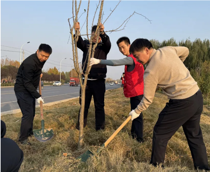 冬季绿化添新景,美化环境齐争先。11月21日下午,卫滨区城管局联合平原镇新时代文明实践所,开展冬季义务植树志愿活动。植树现场,大家三五人一组,相互协作,扛苗散苗、挥锹铲土、刨石挖坑、扶苗培土、踩实定植,热火朝天的场面构成了冬日里一道靓丽的风景线。经过一个下午的奋战,百余株新树挺立路旁,为辖区增添了丛丛绿意。