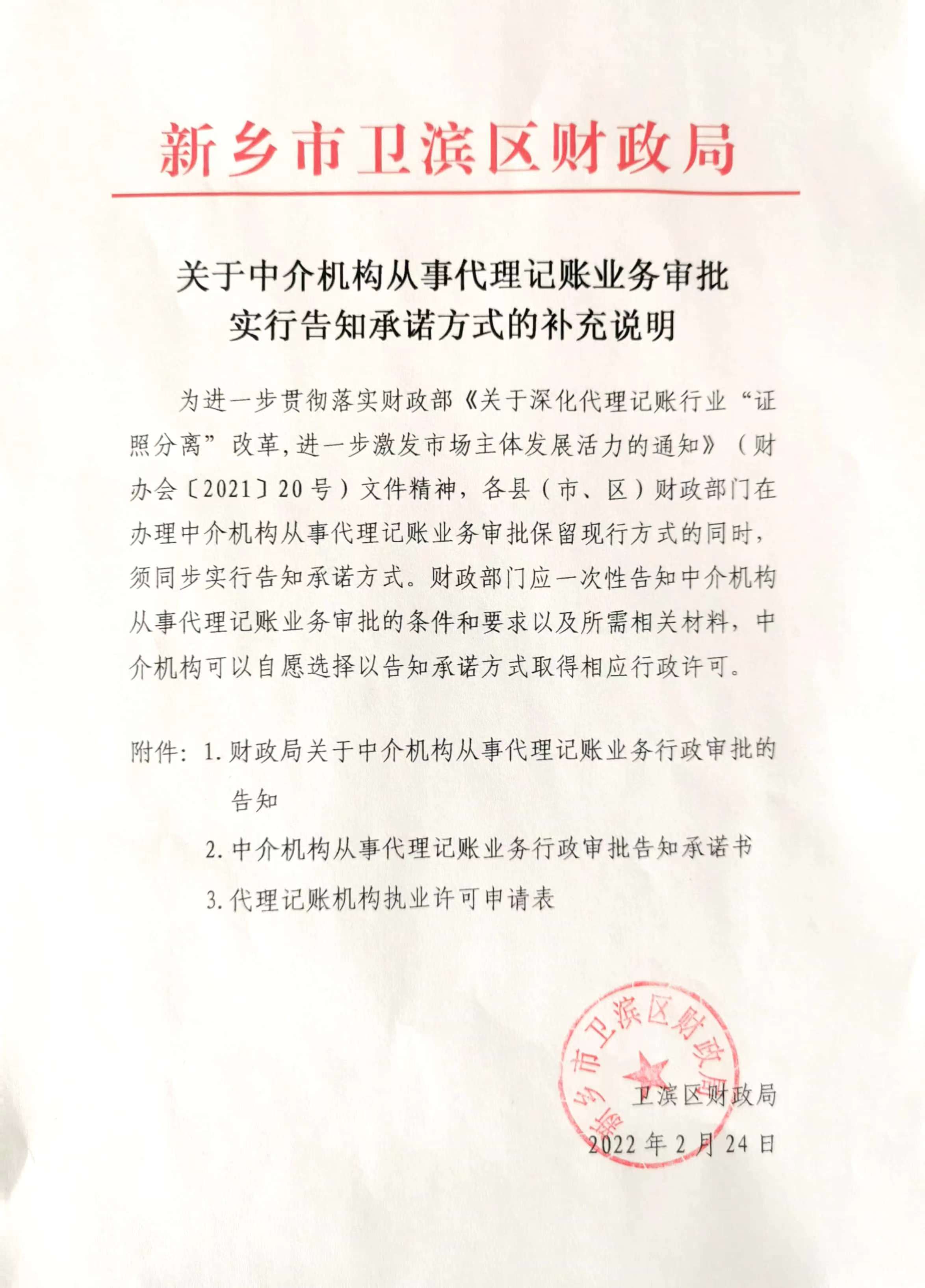关于中介机构从事代理记账业务审批实行告知承诺方式的补充说明