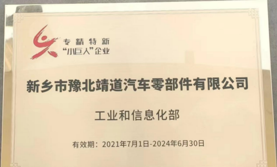 新乡市豫北靖道汽车零部件有限公司,成立于 2006 年,是一家专注于汽车转向器系统核心零部件(螺杆、螺母、齿扇)研发、制造和销售的高新技术企业。公司通过 IATF16949 质量管理体系、两化融合管理体系认证,导入卓越绩效管理,先后获得第三批国家级专精特新“小巨人”企业、“国家科技型中小企业”、“河南省智能车间”、“河南省质量标杆企业”、“高新技术企业”、“区长质量奖”等多项荣誉。