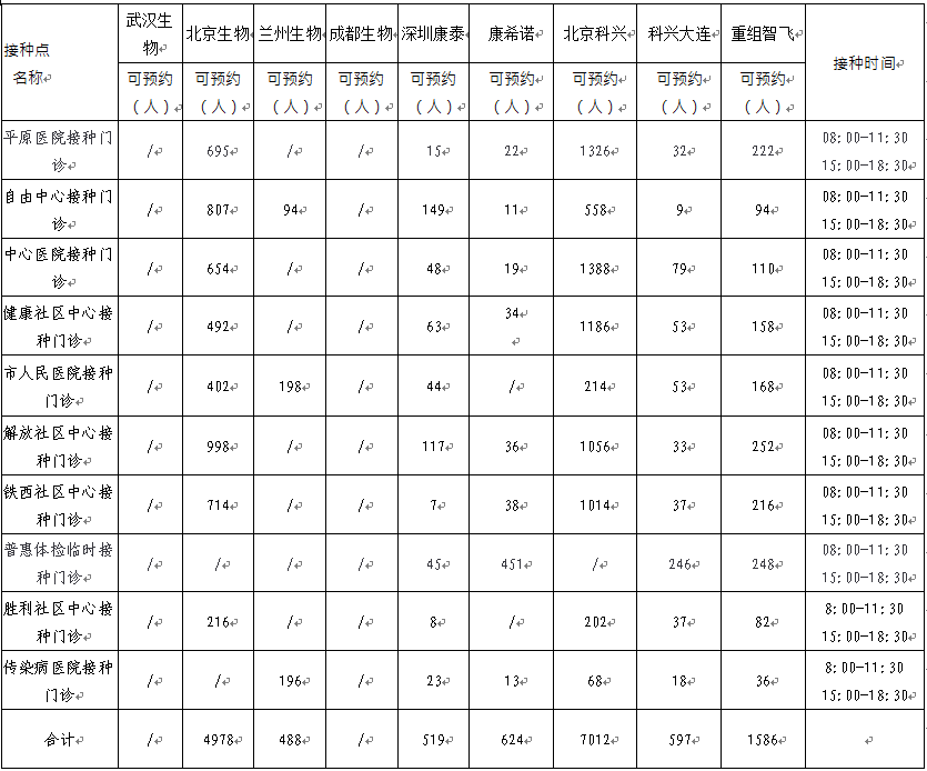 日,卫滨区新冠病毒疫苗有北京生物、兰州生物、深圳康泰、北京科兴、科兴大连、重组智飞、康希诺。可以现场预约名额的接种点如下:
