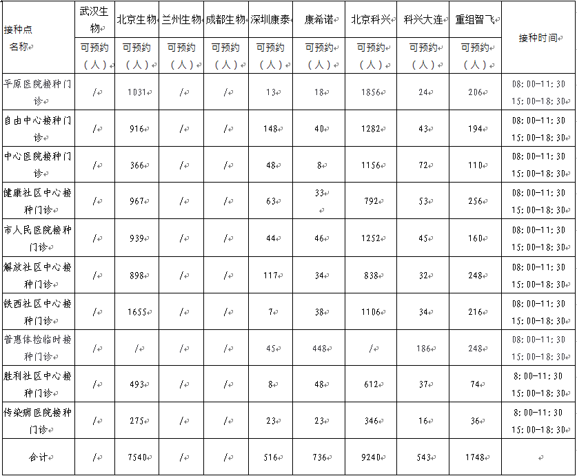 日,卫滨区新冠病毒疫苗有北京生物、兰州生物、深圳康泰、北京科兴、科兴大连、重组智飞、康希诺。可以现场预约名额的接种点如下: