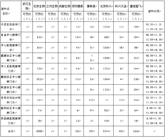日,卫滨区新冠病毒疫苗有北京生物、兰州生物、深圳康泰、北京科兴、科兴大连、