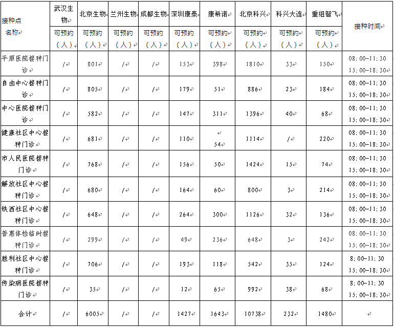 日,卫滨区新冠病毒疫苗有北京生物、兰州生物、深圳康泰、北京科兴、科兴大连、重组智飞、康希诺。可以现场预约名额的接种点如下: