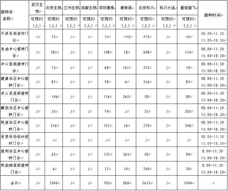 日,卫滨区新冠病毒疫苗有北京生物、兰州生物、深圳康泰、北京科兴、重组智飞、康希诺。可以现场预约名额的接种点如下: